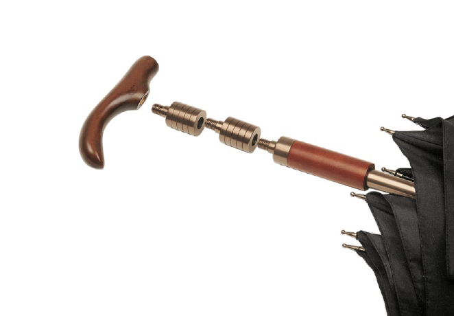 Nota sobre el ajuste: Gracias a los adaptadores de altura incluidos en el puño, este paraguas se convierte en un accesorio personalizado, garantizando que el apoyo sea siempre ergonómico y seguro para cualquier altura.
