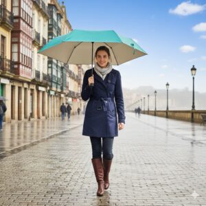 En Verano: Se convierte en una sombrilla de mano elegante y ligera que te mantiene fresca y protegida de los rayos UV.