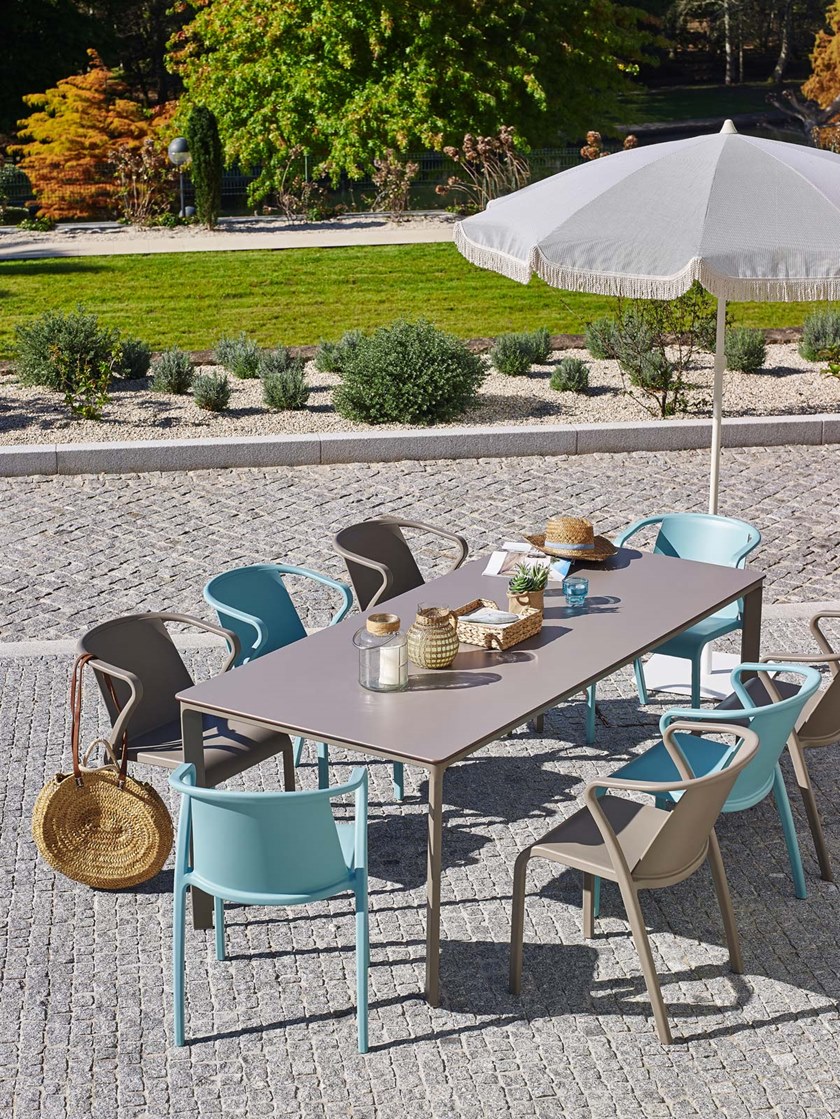 Parasol de aluminio. 10 varillas de fibra de vidrio (6 mm). Regulable en altura.